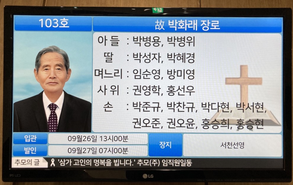 [2022] 하늘나라에서 편히계세요.. 한지붕한가족 2022-10-08 09:52 347 0 1937. 03. 10 ~ 2022. 09. 25 목록 본문 댓글목록0 등록된 댓글이 없습니다.
